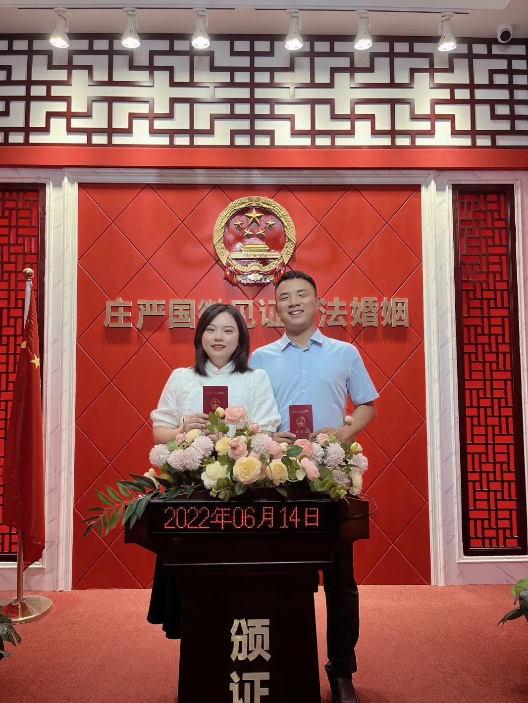 他:蔡 豪 萍乡市公安局交通警察支队湘东大队白竺中队民警 她:李海坤 萍乡市公安局交通警察支队湘东大队政秘股宣传民警 在工作接触中,互生情愫,2022年6月14日两人喜结连理,组成了一个“双警家庭”。