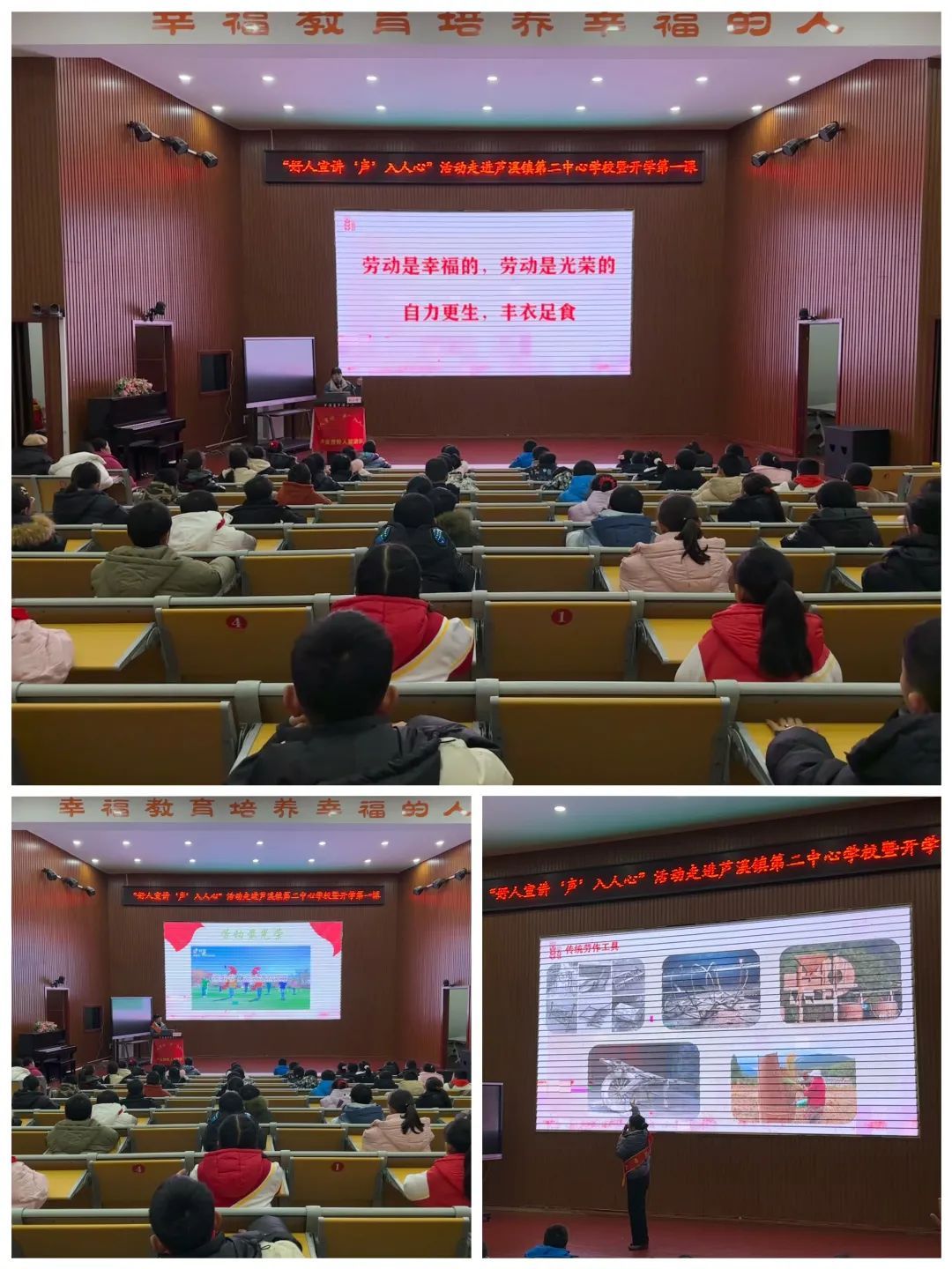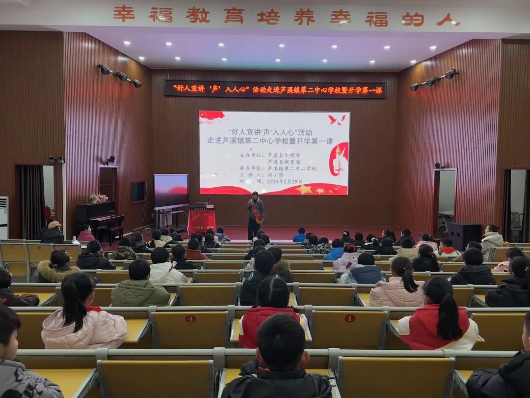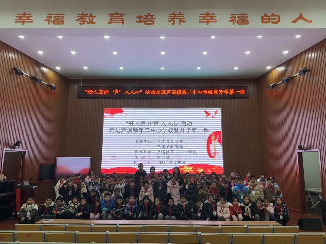 总有一种力量让人热泪盈眶,总有一种精神让我们格外振奋!为引导学生向好人看齐,向好人学习,从而让孩子们树立正确的人生观、价值观和世界观,营造“学好人,敬好人,做好人”的校园文化氛围,2024年2月29日,“好人宣讲 ‘声’入人心”活动暨开学第一课走进了芦溪镇第二中心学校,“中国好人”刘小清以“让劳动精神浇灌青春的繁花”为主题进行宣讲。