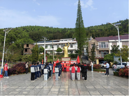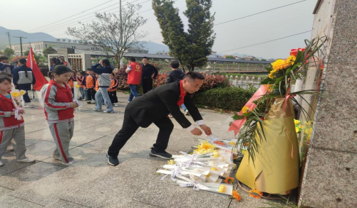 全体师生瞻仰烈彭树敏烈士纪念碑,黄校长带领大家敬献鲜花。一朵朵鲜花,象征着一颗颗炙热的心,代表着我们对革命英雄的尊重、感激、热爱和敬重。