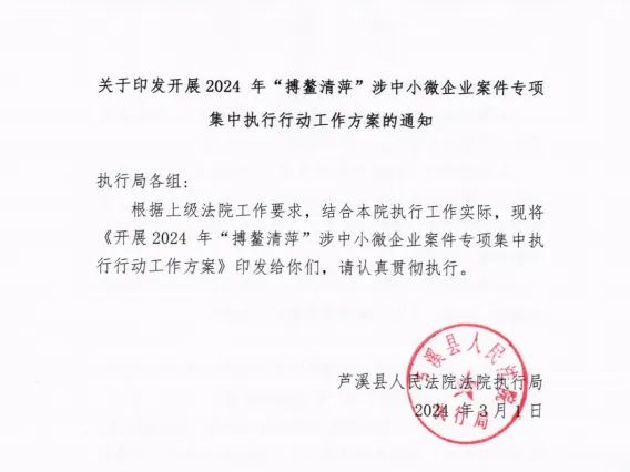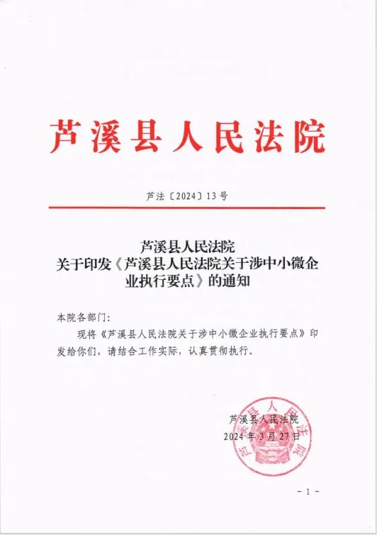 中小微企业作为市场经济主体的重要组成部分,是经济新动能培育的重要源泉,对于改善民生、扩大就业、增强市场活力具有重要意义。一直以来江西省芦溪县人民法院立足主责主业,持续关注中小微企业实际需要,精准对焦中小微企业发展堵点和司法需求,及时兑现胜诉当事人合法权益。3月4日至4月3日,芦溪法院开展2024年“搏鳌清萍”涉中小微企业案件专项集中执行行动,以实际行动服务企业发展,持续优化营商环境。 周密部署,梳理目标案件 下发《关于印发开展 “搏鳌清萍”涉中小微企业案件专项集中执行行动的通知》,制定详细活动计划和任务。对中小微企业作为申请人或被执行人的案件进行全方位的摸排,针对执行难度较大的案件会同相关企业召开分析研判会,找准问题症结,制定“一案一策”执行计划,在底数清、情况明的基础上对摸排案件全力出击,保障行动顺利开展。 统一动作,制定执行要点 出台《芦溪县人民法院关于涉中小微企业执行要点》,对涉及中小微企业类案执行办案思路和要点进行归纳梳理,系统地提炼总结出具有针对性、实用性和可操作性的司法措施。该要点围绕执行工作职责,明确了案前督促、多方联动、执破融合、信用修复等10项具体举措,助力中小微企业纾困解难,为企业健康发展提供有力法治保障。 迅速出击,践行能动司法 芦溪法院始终坚持善意文明执行理念,对中小微企业是申请执行人的案件,加快执行“速度”,确保其权利以最快速度实现。对中小微企业是被执行人的案件,融入执行“温度”,在平衡申请执行人权利实现的前提下,坚决避免超标的查封、扣押、冻结企业财产,灵活适用保全措施,最大限度降低司法活动对中小微企业的影响。对仍有发展潜力、存在救治可能的企业,积极引导当事人达成延期支付、分期履行、第三人担保、代为履行等执行和解协议。对和解无望的僵尸企业,加快“执破融合”,通过预重整、破产重整、破产和解等方式,助力僵尸企业市场出清,优化社会资源配置和地方产业布局。 在此次涉中小微企业专项执行活动中,芦溪法院执行完毕涉企案件56件,达成和解21件,执行到位金额2433.6万元。 |