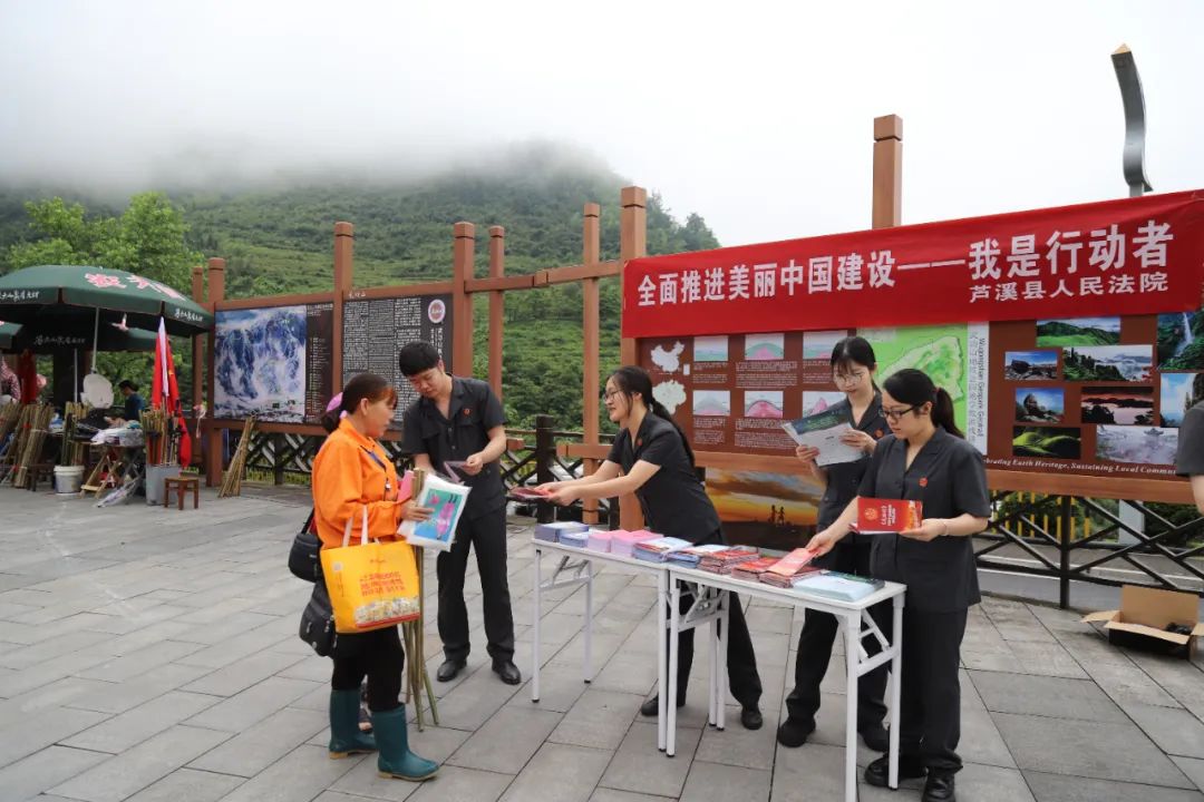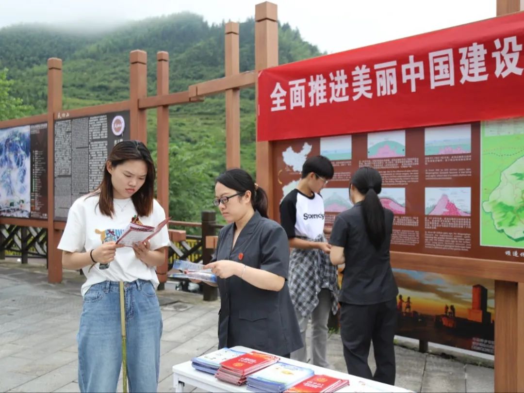 在世界环境日来临之际,为深入学习贯彻习近平生态文明思想,促进人与自然和谐共生,提升景区内居民和来往游客的环境保护意识,近日,芦溪县人民法院干警来到武功山风景名胜区,开展以全面推进美丽中国建设为主题的“六五”环境日普法宣传活动。 法院干警在武功山景区登山入口处悬挂起“全面推进美丽中国建设—我是行动者”的横幅,摆放活动宣传展板,在活动现场发放宣传手册、接受法律咨询,与往来游客和围观群众积极互动,热情介绍武功山景区内的著名景点,结合宣传手册内容和环境资源典型案例,解读环境资源相关法律法规及政策,讲解环境污染的危害及法律责任,号召大家树立绿色生活理念,主动养成低碳、健康、绿色、环保的出行习惯,以实际行动投身到美丽中国建设的伟大实践当中。 本次活动发放了普法宣传手册300余份,耐心解答法律咨询20余次,受到了众多群众的一致好评。活动结束后,干警们还投入到环保志愿服务活动中,自觉清理景区周边塑料垃圾、杂物,法院干警的身体力行提升了景区内游客的责任意识,带动了一批游客主动加入,取得了良好的普法宣传效果。 下一步,芦溪法院将继续践行绿水青山就是金山银山的理念,主动延伸审判职能,积极拓展环保法治宣传的深度和广度,在审判实践当中坚持能动履职、贯彻落实“绿色原则”,主动融入环境治理体系,积极与各相关部门沟通协调形成多方协同联动的环境资源司法保护合力,为全面推进美丽中国建设贡献司法力量。 |