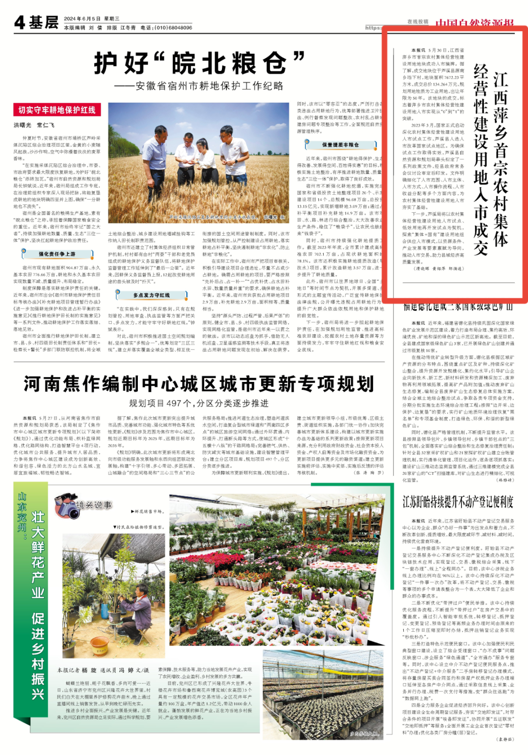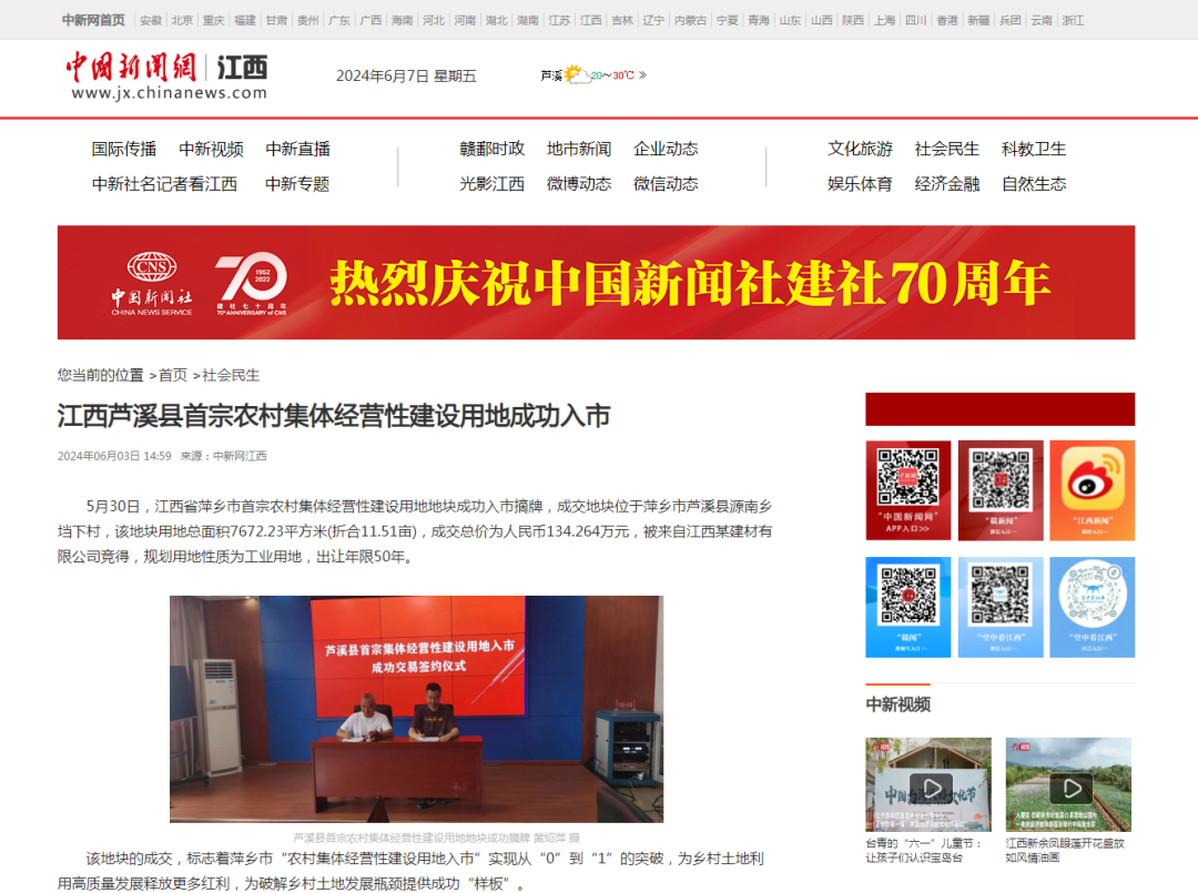 近日 芦溪县首宗农村集体经营性建设用地成功入市 获中新网 中国自然资源报等 多家媒体聚焦 ↓↓↓ 6月3日,中新网江西频道首页聚焦芦溪县首宗农村集体经营性建设用地成功入市。 6月5日,中国自然资源报刊播《江西萍乡市首宗农村集体经营性建设用地入市成交》一文,关注芦溪县首宗农村集体经营性建设用地成功入市。 详情如下 芦溪县首宗农村集体经营性建设用地地块成功摘牌 黄绍萍 摄 5月30日,江西省萍乡市首宗农村集体经营性建设用地地块成功入市摘牌,成交地块位于萍乡市芦溪县源南乡垱下村,该地块用地总面积7672.23平方米(折合11.51亩),成交总价为人民币134.264万元,被来自江西某建材有限公司竞得,规划用地性质为工业用地,出让年限50年。 该地块的成交,标志着萍乡市“农村集体经营性建设用地入市”实现从“0”到“1”的突破,为乡村土地利用高质量发展释放更多红利,为破解乡村土地发展瓶颈提供成功“样板”。 2023年3月,国家正式启动深化农村集体经营性建设用地入市试点工作,芦溪县成功入选入市改革国家试点地区。为确保试点工作取得实效,芦溪县高度重视,出台了一系列政策文件,经县政府常务会议讨论审定后印发,从入市范围、入市主体、入市方式、入市操作流程、入市收益分配、入市土地增值收益调节金征收使用管理等环节全方位进行明确和细化,为农村集体经营性建设用地入市奠定基础。 下一步,芦溪县将以农村集体经营性建设用地入市试点、低效用地再开发试点为契机,探索“集体+国有”建设用地组合供应入市工作,以资源条件、产业发展等要素禀赋为导向,推动入市交易,助力芦溪县域经济高质量发展。 |