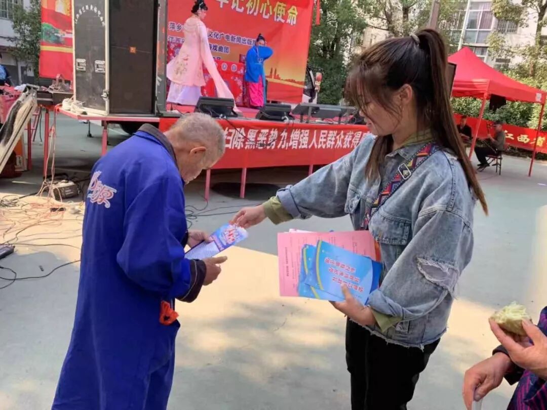 10月18日,区文广新旅局联系组织江西省艺鹃黄梅戏曲团到五陂镇进行扫黑除恶专场演出。通过戏曲这种老少皆宜的形式,为扫黑除恶工作涂抹一缕亮丽的文化底色,为五陂百姓带来了一场精彩的视听盛宴。 演出开始前,镇扫黑办通过设立咨询台、发放宣传资料等形式向群众进行扫黑除恶宣传,并现场进行解读。通过宣传,进一步提高群众对扫黑除恶专项斗争的认识度、参与度,增强群众的安全感。 此次表演精彩纷呈,将“扫黑除恶”内容与戏曲表演形式融合在一起的举动更是让观众眼前一亮,让老百姓明白了党委、政府“有黑必扫、有恶必除、有‘伞’必打、有乱必治”的决心,赢得了现场观众的热烈掌声。 |