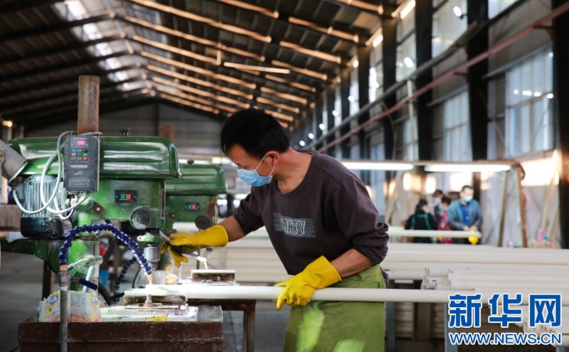 2月24日,江西萍乡市湘东区产业园,萍乡市金刚科技有限公司高温陶瓷辊棒生产线上,工人们忙着赶制订单。