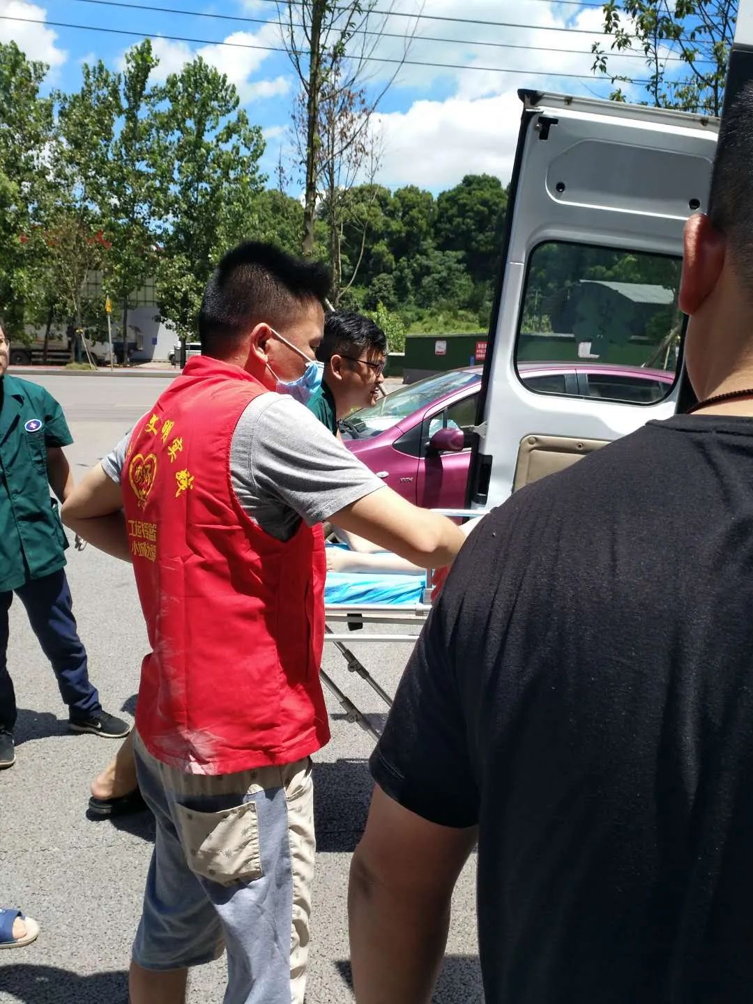 镜头一:最美志愿者为文明添彩 8月2日上午,李博逸正在汽修一条街当志愿者,旁边移动话费充值店传来一阵呼喊:“有人晕倒了,快来救命啊”。听到喊声后,李博逸赶紧跑过去,拿东西枕着钟月萍的头部让她平躺在地上,后来,发现她开始呕吐,就立即将她的头部扶起来放自己腿上,帮她擦拭呕吐物,不让呕吐物影响她呼吸,慢慢的她才清醒过来。 “阿姨,您哪里不舒服,能听得到我们说话吗”?李博逸关切的问道。期间,村里及时叫来村医为她初步诊疗,不久,120赶到,医护人员将其送往医院接受紧急治疗。“我当时离晕倒者不远,也就十来米的距离。到达后,我看到晕到者是一名五十多岁的女性,侧躺着,自己站不起来。”李博逸回忆说。当时晕倒者周围围了一些人,我就叫这些人尽量离晕倒者远一些,别太拥挤,否则不通风,空气流通慢,对晕倒者不利。平时学的一些紧急医疗救助措施,没想到‘这手活儿’居然今天派上了用场”。李博逸说道。