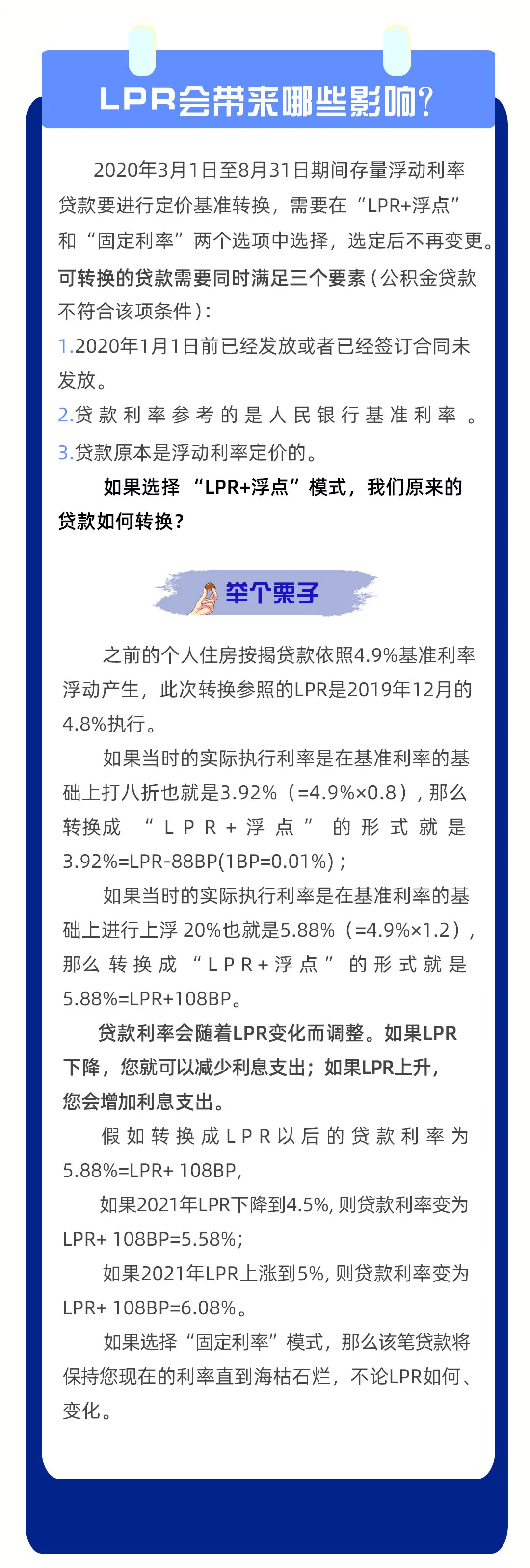 江西·农商银行 江西人民自己的银行 ◆ ◆ ◆ 我们先从第三个问题说起 已收到96268客服短信通知的 江西辖内农商银行个人贷款客户 可通过手机银行、e百福APP 在线一键转换签约LPR 在线转换签约LPR操作指南 (←左右滑动查看更多→) 扫描下方二维码 下载手机银行、e百福 可在线一键转换签约LPR 手机银行 e百福 小贴士 1、定价基准转换仅可办理一次。 2、如果您还没有注册江西·农商银行手机银行,可在手机银行中选择“登录——自助注册”注册后办理。 3、LPR转换办理后,您可尝试通过手机银行“我的-我的贷款”栏目查询贷款信息。 那到底什么是LPR? LPR会带来哪些影响? 我们继续来看看吧 |