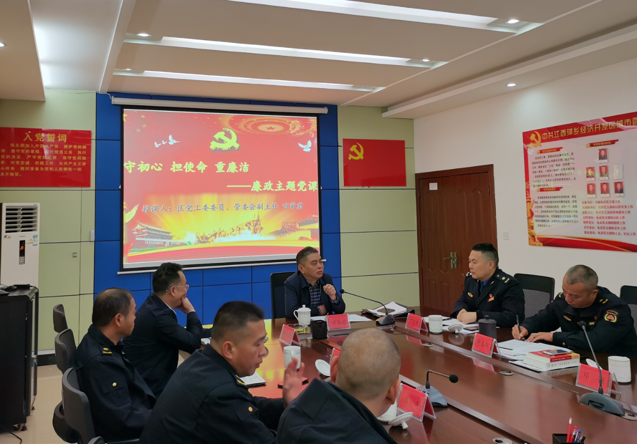 11月28日上午,区党工委委员、管委会副主任甘敏君为区城管局全体党员干部上了一堂题为《守初心,担使命,重廉洁》的廉政党课。