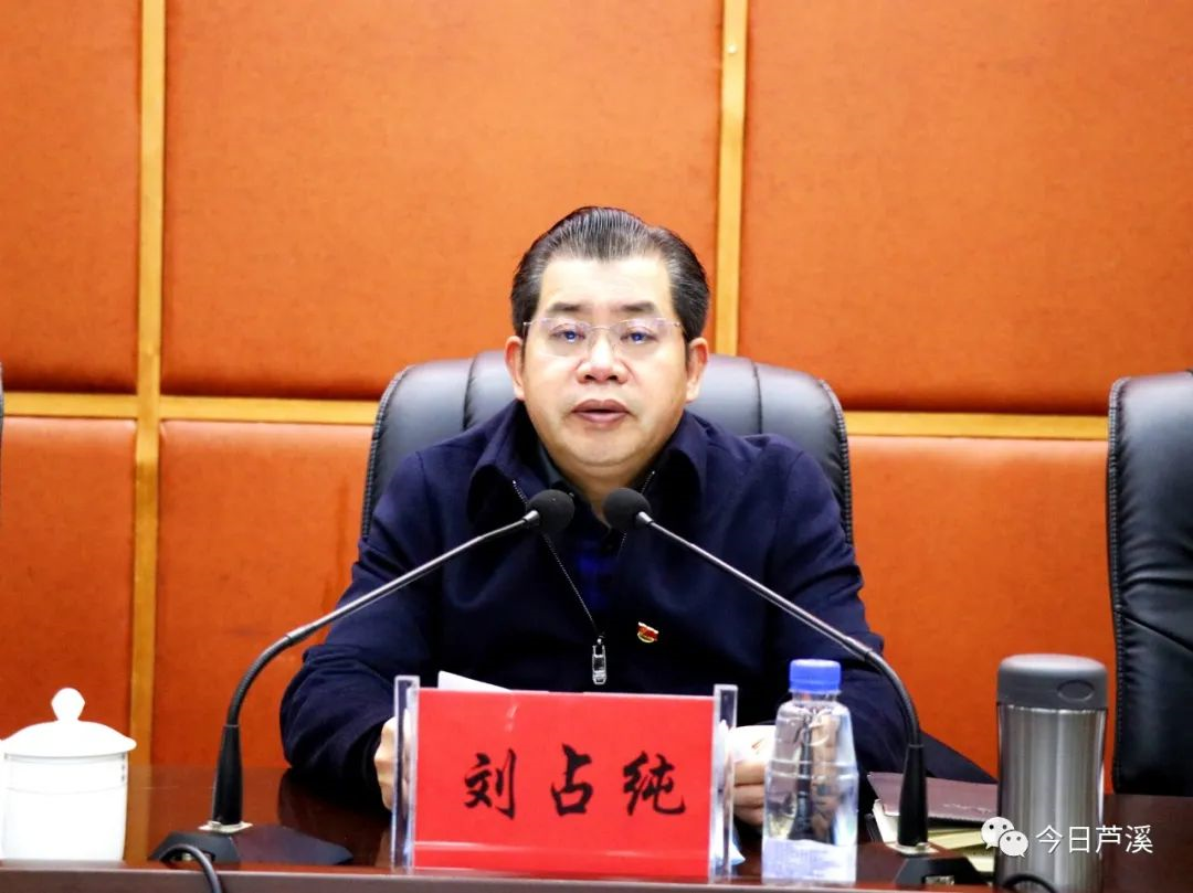 就深入贯彻落实习近平新时代中国特色社会主义思想、党的十九届五中全会精神,抓好全县党的建设工作,刘占纯指出,2020年,全县各级党组织以“三化”建设为抓手,以提升政治功能和组织力为重点,扎实抓好基层党建工作,为决胜全面建成小康社会、推动芦溪高质量发展提供了坚强组织保证。2021年是实施“十四五”规划、开启全面建设社会主义现代化国家新征程的第一年,也是我们党成立100周年,抓好党的建设各项工作尤为重要。全县各级党组织要以习近平新时代中国特色社会主义思想为指导,深入贯彻落实新时代党的建设总要求,持续完善上下贯通、执行有力的组织体系,保障“十四五”各项工作开好局、起好步。重点抓好以下工作: 一是要抓好党的政治建设,更加坚定自觉做到“两个维护”。坚定主心骨,着力提高政治判断力;把牢方向盘,着力提高政治领悟力;当好行动派,着力提高政治执行力。 二是要抓好“三化”建设,提升基层组织的组织力。对标“四个方面定标准、六个方面立规范,一张网络联整体”,持续抓基层、打基础,补短板、强弱项,推动基层组织在农村、在城市社区、在机关企事业单位、在非公企业和社会组织全面进步、全面过硬。 三是要抓好干部选育管用,激发干事创业热情。树立正确用人导向;强化正面激励;培养选拔优秀年轻干部。 四是要抓好党的建设,推动全面从严治党向纵深发展。持之以恒正风肃纪;守好意识形态主阵地;抓好党管统战工作;履行好党管武装责任;推进社会治理精准。 刘占纯强调,要努力以高质量党建引领高质量发展,为“十四五”开好局起好步提供坚强保证,以优异成绩庆祝建党100周年。