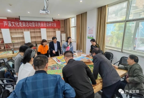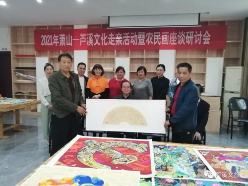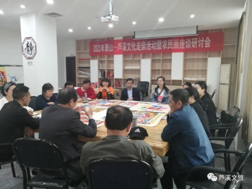 | “志合者,不以山海为远”。4月21日,浙江省萧山区农民书画协会的老师们被芦溪农民画的魅力所吸引,来到芦溪县开展为期3天的文化走亲活动。 萧山是杭州的南大门,境内的“跨湖桥文化”距今有8000年历史,公元2年始建县,境内地理形势优越,山雄水秀,名胜古迹众多人文景观齐全,人文资产丰富多彩。 芦溪古称“枕吴头而压楚尾”,历史悠久,拥有江西最早书院之一的濂溪书院,人文鼎盛,是原国家文化部命名的“中国农民画画乡”“中国现代民间绘画之乡”。