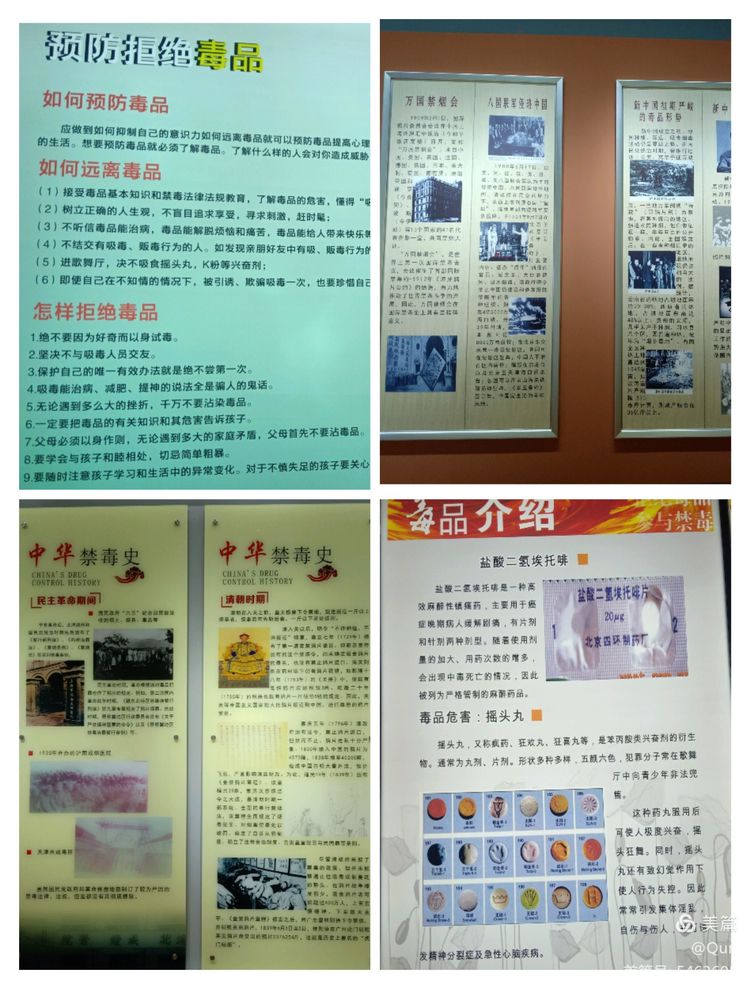 进入毒品预防教育基地,随着讲解员对绘声绘色的讲解,同学们知晓了毒品的常识和介绍、什么是吸毒、吸毒方式有哪些;认识了毒品原生植物;知道了毒品对人、家庭、社会的危害;了解世界毒情形式,中国禁毒史、禁毒政策法规及成果和预防毒品的方法。