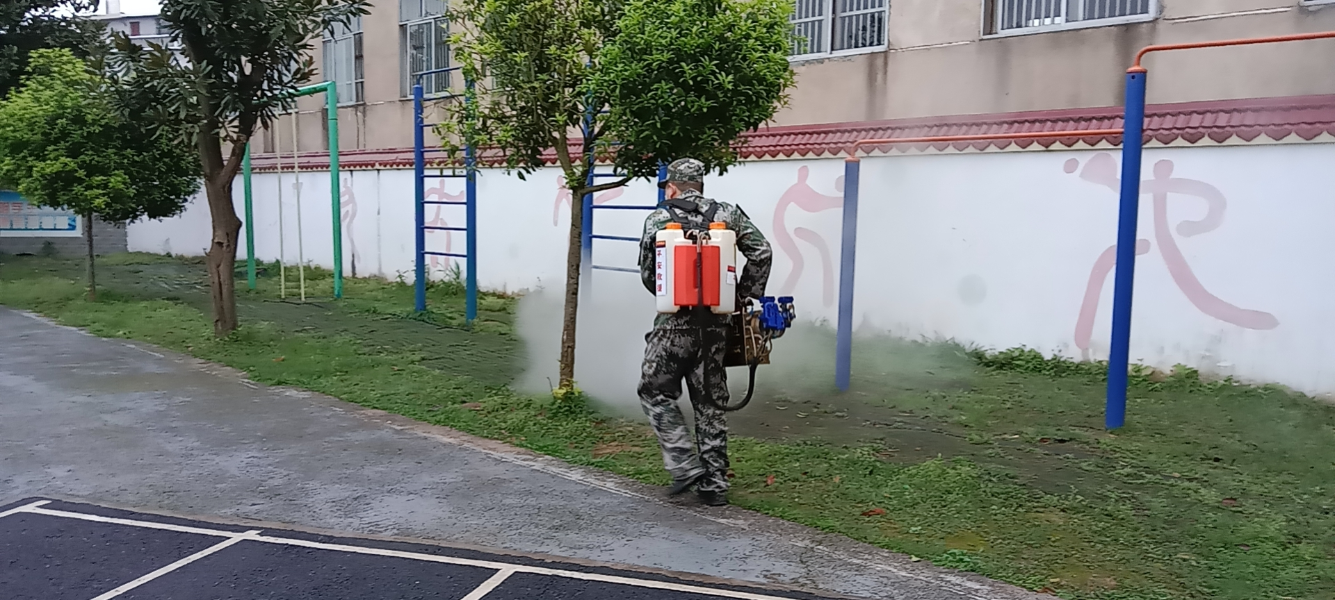 为全力做好疫情防控各项工作,下埠镇潘塘小学邀请萍乡市湘东区平安救援队队员,利用放学后的时间开展了校园集中全面消杀工作。
