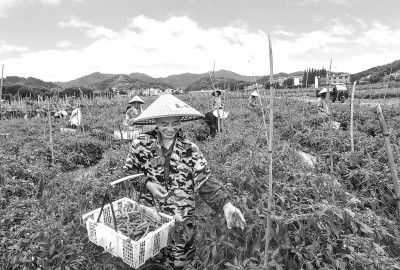近年来,江西省萍乡市安源区走出一条集农事体验、观光采摘于一体的生态发展新路子,为乡村振兴注入绿色活力。图为日前当地里善村农户正在采摘蔬菜。肖南波摄/光明图片