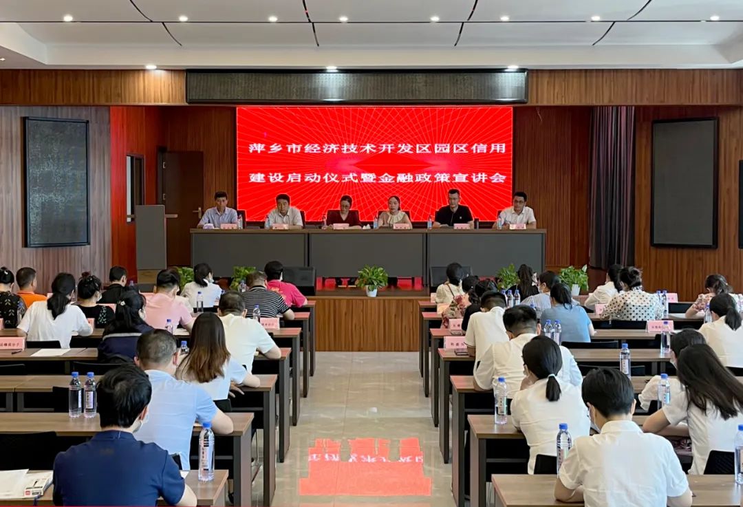 7月20日下午,萍乡经开区工业园区信用建设启动仪式暨金融政策宣讲会召开。人民银行萍乡市中支党委委员、工会主任文涛,区党工委委员、管委会副主任熊玮出席,市金融办、区属有关部门,以及各相关金融机构代表参加。