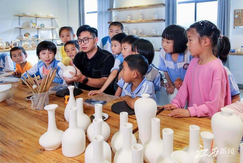 暑假期间,萍乡市湘东区广寒寨乡在研学基地推出“研学+文化”新模式,学生们在“陶艺”课程中,体验非遗技艺,并在老师的精心指导下,制作专属的研学纪念品。特约通讯员 李桂东摄