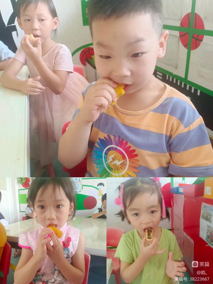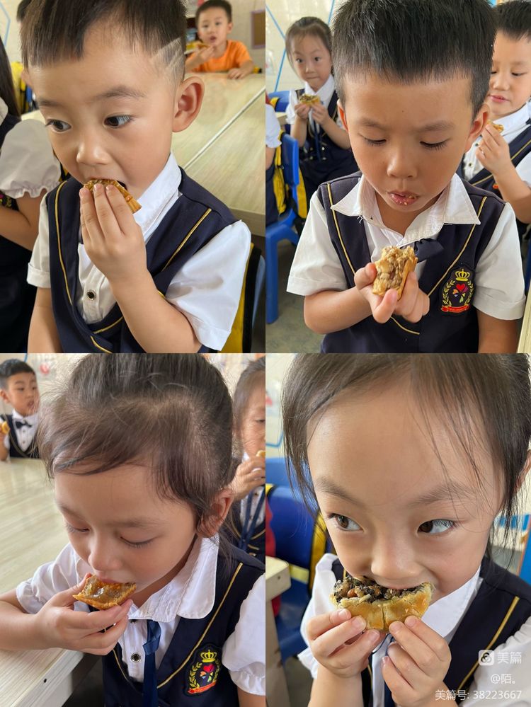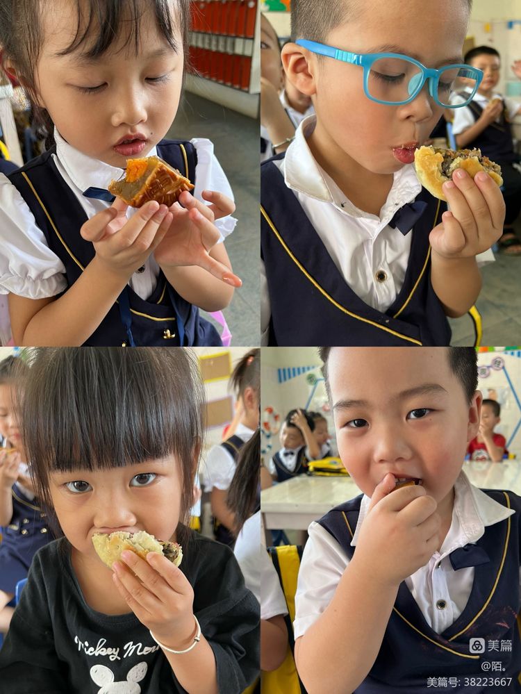 小朋友,你猜到这个谜语了吗?尽情发挥你们的“小小智慧”吧! 花好月圆 以幸福做皮,思念为馅,把团圆的心意包裹在月饼里,将节日的祝福融入在美食中。