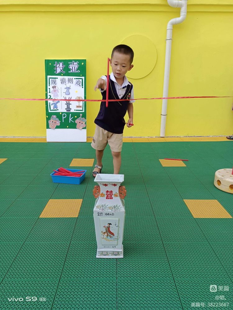 趣味投壶 “有初”、“连中”、“贯耳”、“散箭”、“全壶”、“有终”、“骁箭” 这些是什么呢? 原来是传统游戏投壶的名目。 小朋友们,准备好了吗? 让我们来一场投壶比赛吧!