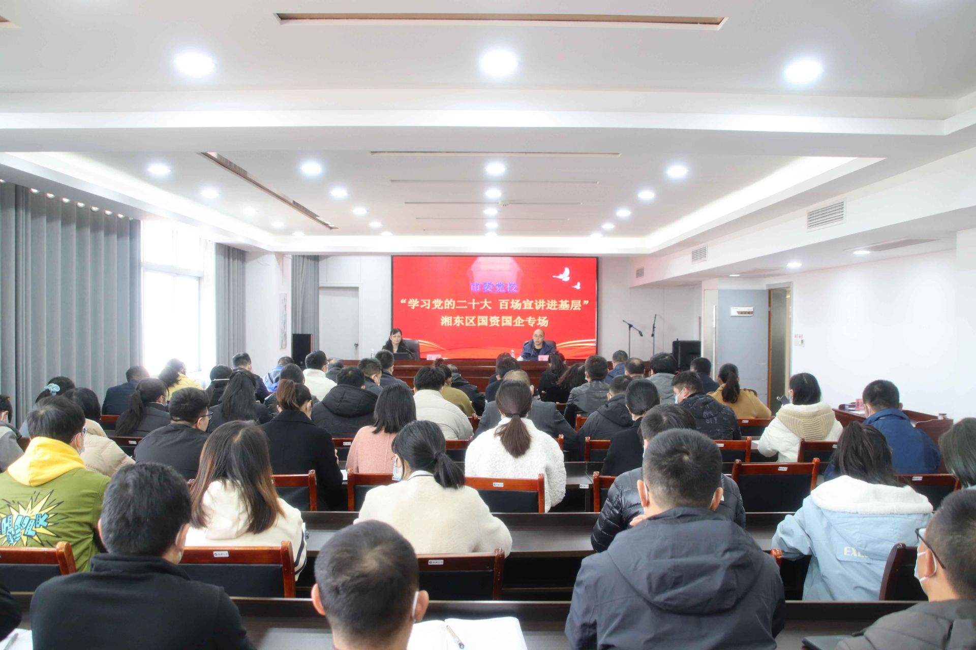 深冬时节,寒意凛然,但湘东区昌盛控股集团公司会议室却暖意融融,气氛热烈。12月12日下午,由湘东区委党校邀请,萍乡市委党校“学习党的二十大 百场宣讲进基层”湘东区首场活动走进区国资国企系统。 宣讲会上,市委党校“星火宣讲团”成员、党史党建教研室副教授胡涛以《夺取新时代中国特色主义新胜利的政治宣言和行动纲领》为题,重点围绕深刻认识和准确把握党的二十大召开的重大意义、主要精神实质和全力推动党的二十大精神落地落实等三个方面,对党的二十大精神进行了系统阐述和深入解读。 宣讲会主题鲜明、内容丰富,语言精练、通俗易懂,既有政治高度、又有理论深度,对于全区国资国企系统党员干部职工全面学习、全面把握、全面落实党的二十大精神,扎实推进国资国企改革创新,具有很强的针对性、指导性。 与会人员认真聆听,仔细记录,深受教育和启发。大家纷纷表示,接下来将立足工作职能,深入贯彻落实党的二十大报告对国资国企的重大部署要求,进一步完善以管资本为主的监管体系,增强区属企业发展活力,以高质量党建引领保障高质量发展。 |