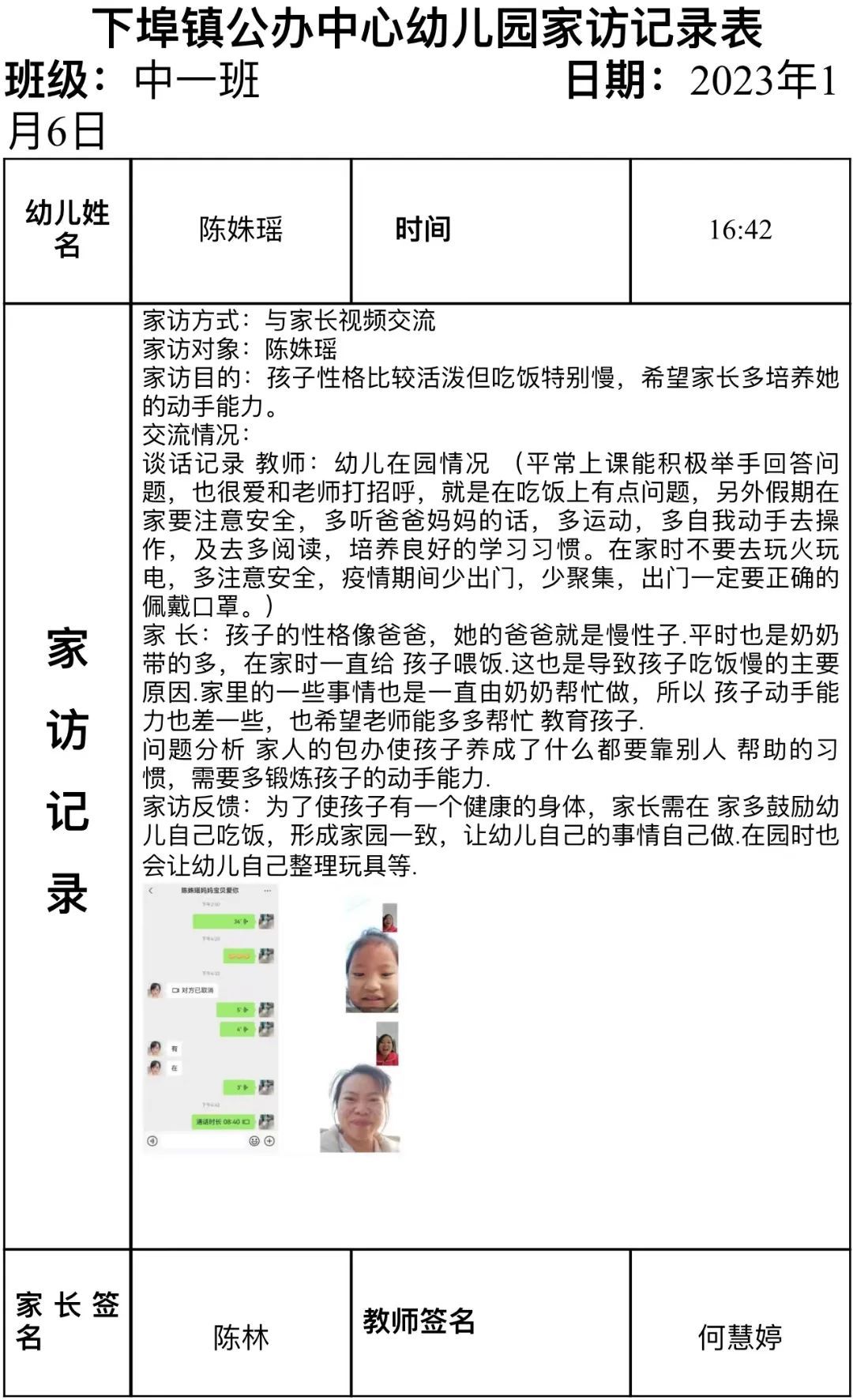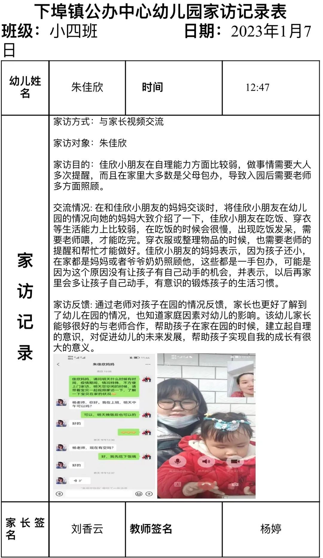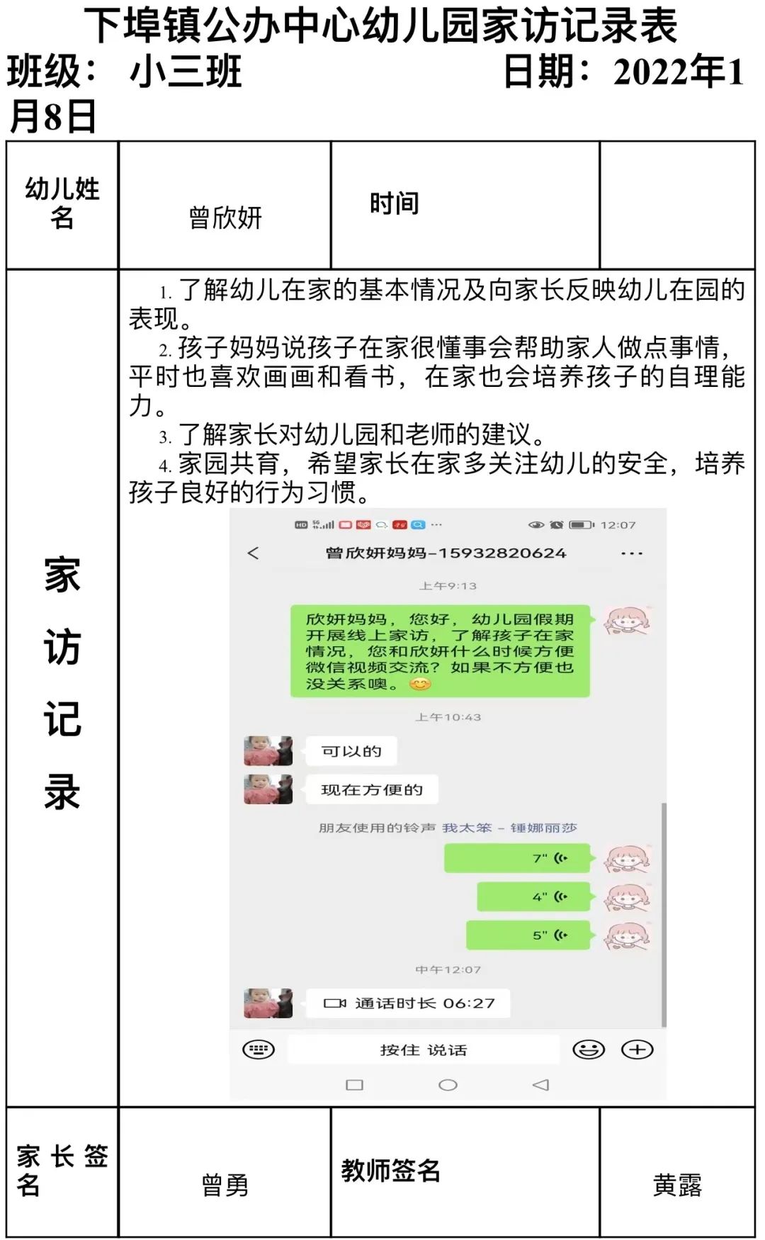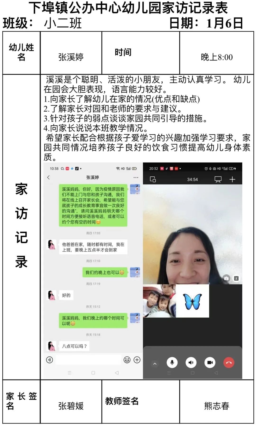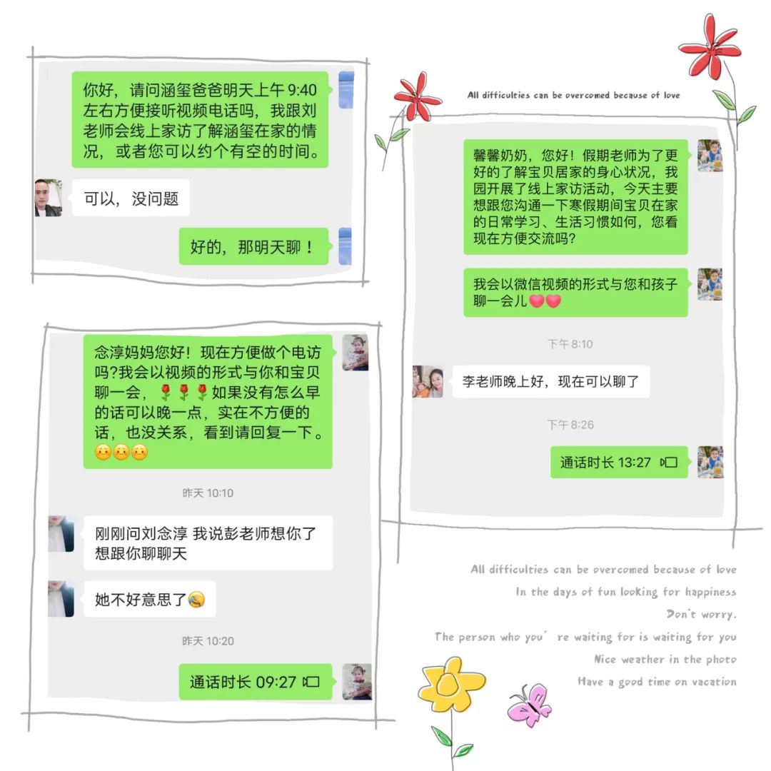 在这个“特殊”的假期里,为了解每位幼儿居家的生活作息、游戏、学习等情况,为其提供适时教育支持,促进幼儿园教育与家庭教育的有机衔接,特开启特别的“见面”活动。下埠镇中心幼儿园的老师以“云”相遇的方式,让家园之间进行了一场“零”距离的沟通。将幼儿园与教师的关爱之情通过云端传递到家长和孩子的身边。 01端相约 为爱连线 为确保本次线上家访的顺利进行,达到预期的效果,家访前,老师们根据我园小、中、大班各年龄段孩子发展的特点,以年级组为单位开启了语音会议进行了讨论与分析,最终制定了线上家访活动方案。活动开始前,老师向各位家长发出诚挚邀约,共同期待着本次云端相见。 02云端相见 共话成长 叮咚~期待着,期待着,我们终于见面啦!随着铃声响起,视频连线开启啦!孩子们看到自己的老师或害羞或紧张,随即都欢呼雀跃起来,行动中、言语间、眼神里,一种信任、一份期待! 线上家访活动中,老师们与家长心贴心交流,给予家长科学合理的教育指导。引导家长和宝贝们要保持良好的作息时间、饮食规律、适量运动、积极参与亲子游戏、参加力所能及的家务劳动。同时也提醒家长做好幼儿假期安全防护,向家长们宣传居家安全、水电火安全、交通安全、饮食卫生、防拐骗、防诈骗、防疫安全等一系列安全知识,保障幼儿度过一个平安、快乐的寒假。 视频中孩子们不忘和老师分享自己的喜悦,自己的成长:“老师,我想你!”“我在家里可听话了,还帮妈妈做家务呢!”“老师,我会变魔术,我变给你看!”“老师,寒假我交到了新朋友......”特别的长假,这样特别的见面方式,让宝贝们见到了许久未见的老师,也让老师见到挂念已久的宝贝们!看到了像小雨滴一样活蹦乱跳的宝贝,老师们的心里无比暖心。虽然与宝贝们隔着屏幕,但我们的心始终连接在一起,通过网络平台,我们一起学习、一起欢笑、一起成长、互相陪伴。 03 用心记录及时总结 线上家访结束后,老师们也结合家访了解的幼儿情况,认真做好记录,完成家访指导记录表,并根据家长的反馈建议,及时进行总结,做好家园共育的后续工作。 线上互动改变的是形式,不变的是初心。本次线上家访活动,架起了家校沟通的高架桥,夯实了学校教育工作的基础。拉近了教师和家长的距离,让孩子感受到了老师的关爱,让家长感受到了学校的温暖,在寒冬暖阳中,爱在家访之路延伸……同时,家长们充分认识到了寒假安全的重要性,进一步提高了对孩子的监管意识,为保障幼儿的生命安全构筑了坚实的防线。下埠镇中心幼儿园全体教职工将继续发挥专业优势,携爱前行,与幼儿、家长隔屏不隔爱,携手并肩,一起走向更美好的未来! |